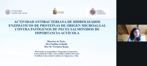La estudiante Pabla Ugalde Díaz aprobó exitosamente su tesis titulada “Actividad antibacteriana de hidrolizados enzimáticos de proteínas de origen microalgal contra patógenos de peces salmónidos de importancia acuícola”, investigación que aporta evidencia científica relevante para el desarrollo de alternativas sustentables frente a los desafíos sanitarios que enfrenta la industria acuícola.